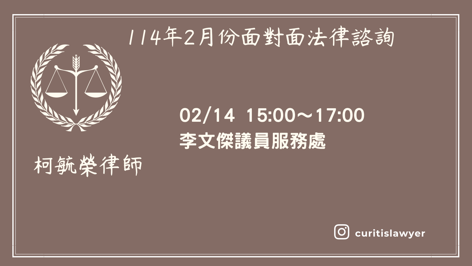 【法律諮詢】「114年2月份面對面法律諮詢時間」